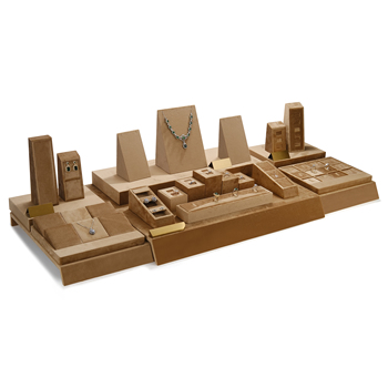 Beige microfibra joyería tienda mostrador accesorios de exhibición collar anillo brazalete joyería soporte de exhibición conjuntos de exhibición de joyería