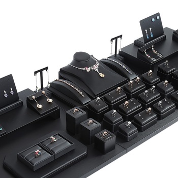SKQ OEM-inserto de cuero PU personalizado, expositor de joyería de lujo, conjunto de soporte de exhibición de joyería
